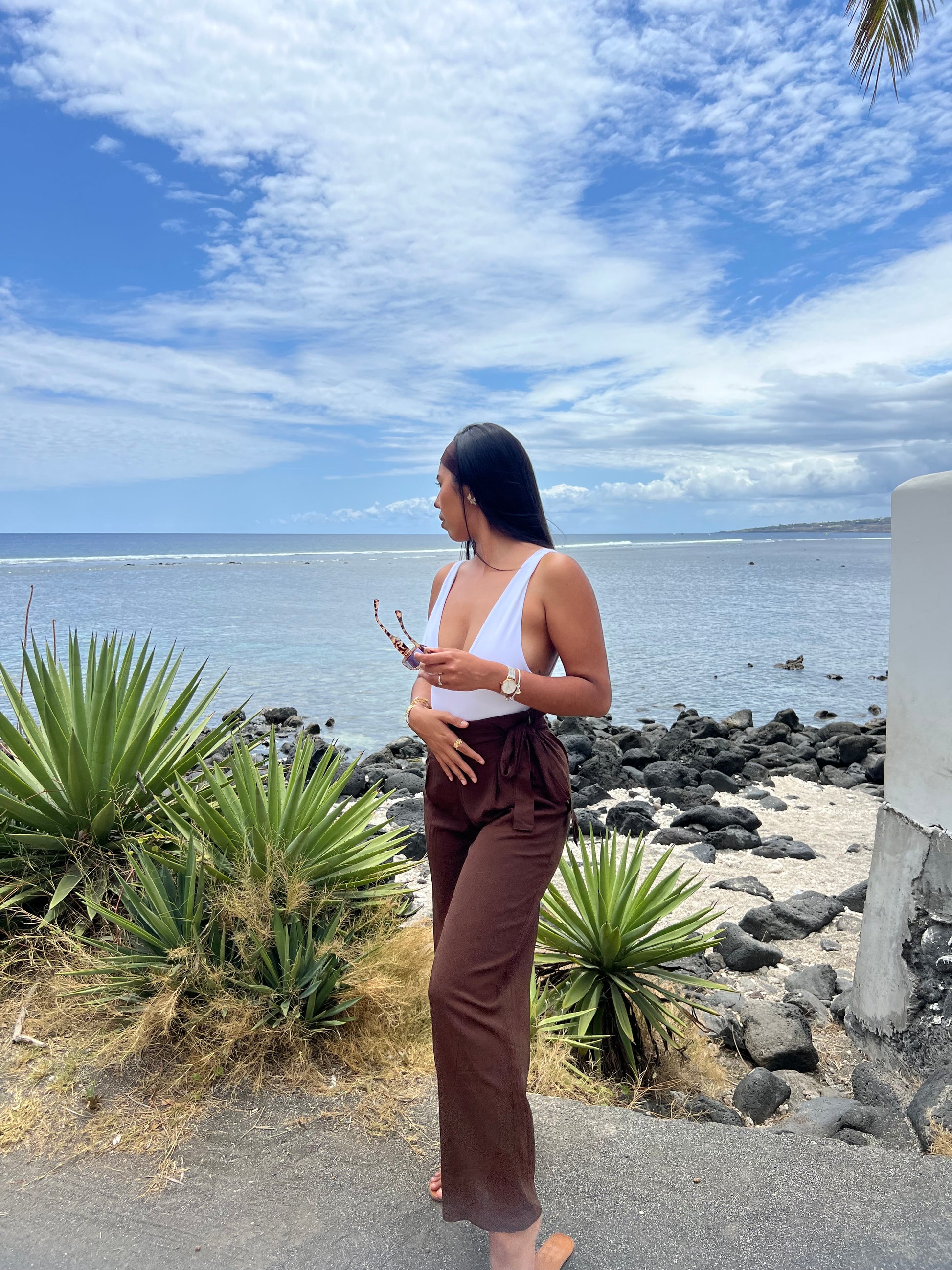 Le pantalon Ana allie élégance et confort. Son lien à nouer à la taille offre un ajustement personnalisé, garantissant un maintien optimal. Idéal pour un look professionnel ou décontracté, ce pantalon polyvalent s’adapte à diverses occasions avec aisance.