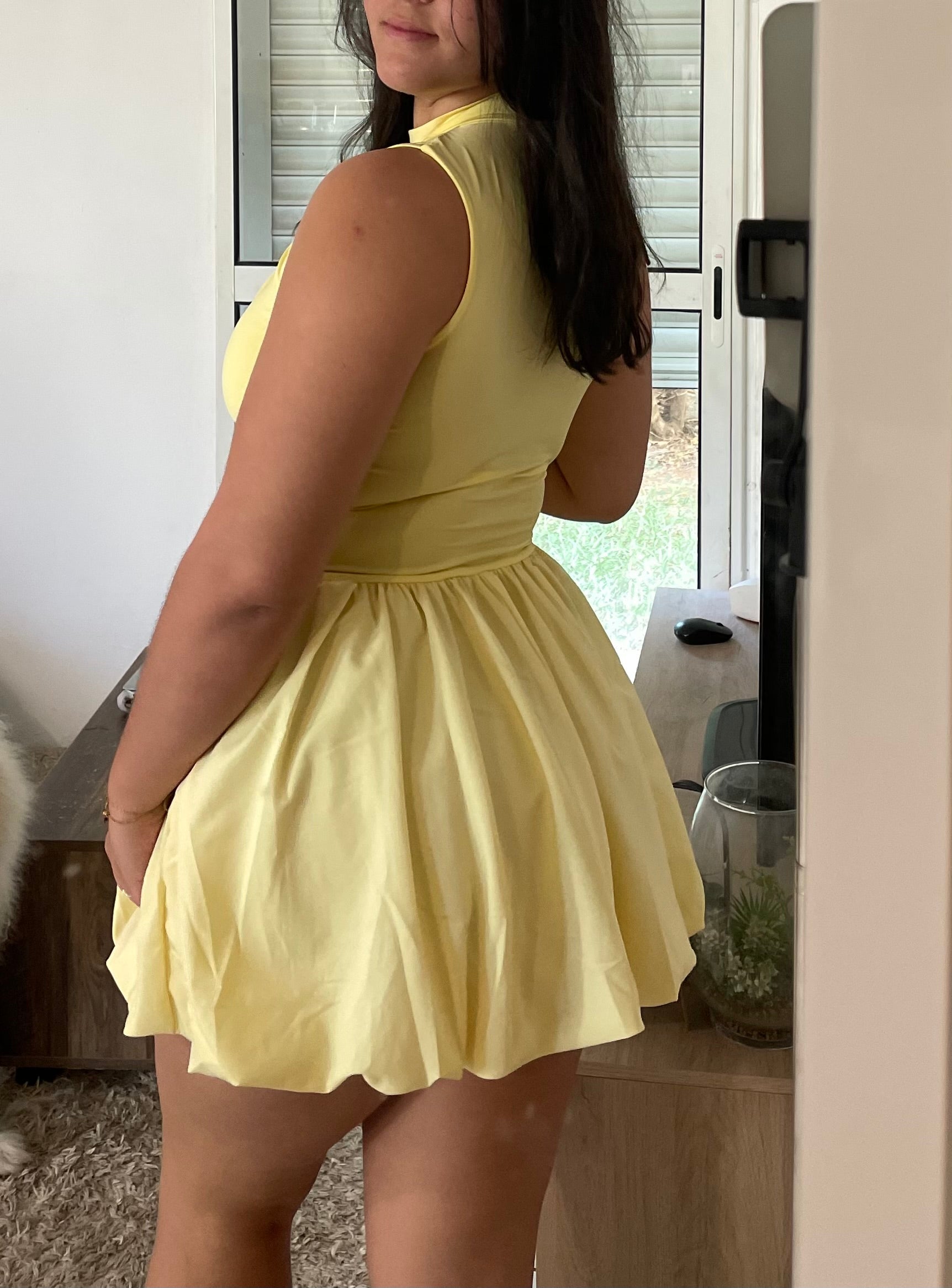 La robe Soley allie élégance et modernité avec sa coupe sans manche et sa conception bi matière. Sa jupe ballon apporte une touche de volume, offrant un équilibre parfait avec son haut cintré. Idéale pour celles qui recherchent une pièce facile à porter en toute occasion.