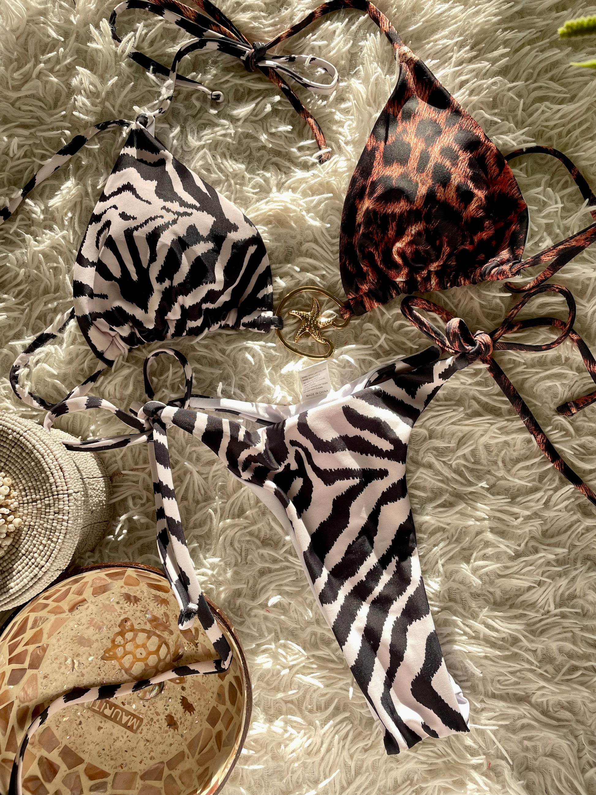 Craque pour le Top Amea, un maillot de bain qui fusionne deux motifs iconiques : le zébré et le léopard.